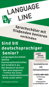 Das Projekt „LanguageLine“ zielt darauf ab ältere Menschen mit Sprachschülern aus der High School und im College zu verbinden. Die Tandems aus einer älteren Person und einer Schülerin bzw. einem Schüler treffen sich regelmäßig für 15 bis 40 Minuten über Zoom oder Skype, um auf Deutsch über verschiedene aktuelle Themen und Fragen zu diskutieren. Auf diese Weise tauschen sich mittlerweile Teilnehmende aus verschiedenen Ländern aus und bauen Brücken über Sprachen, Kulturen und Generationen hinweg.